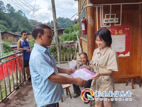 臺江縣民族中學的科高科狀元楊桃同學的錄取通知書!當我知道這份承載著一個家庭期望的通知書將由我親自投送時,懷揣著興奮之情撥通了楊桃的電話,想告訴她“你的通知書到了”,可接通電話才知曉,她忘記通知書填寫的是家里的地址,她最近都在縣城里的親戚家等候通知書呢。按照通知書投送要求,我們必須第一時間送達至本人,而楊桃本人卻不在家,怎么辦?我考慮再三,最終決定親自開車前往縣城把她接回家,當著鄉親們的面把錄取通知書交給她。
