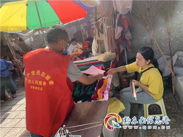 8月28日,在臺江縣縣城大街小巷里,不僅有“趕集”的商販和居民群眾,還有身穿著紅馬甲的萃文街道疫苗接種宣傳引導員志愿者。
