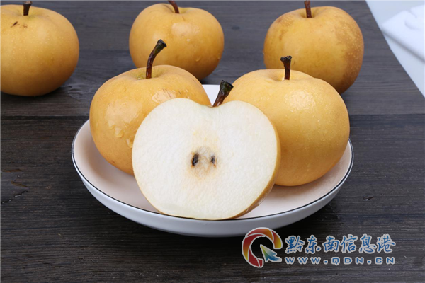 苗疆腹地苗疆果,金秋時節金秋梨。1994年10月,臺江金秋梨曾獲國家科委星火計劃精品獎,有“南方梨王”美稱。金秋梨外觀锃亮金黃,肉質純白細膩、晶瑩剔透,食之脆嫩香甜,是營養豐富,兼有降火、清心、潤肺、化痰、止咳、退熱、解毒等保健功效的無公害優質水果。