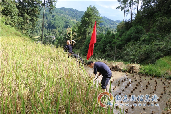 本網(wǎng)訊 9月18日,臺江縣公安局第一黨支部充分發(fā)揮支部的戰(zhàn)斗堡壘作用和黨員先鋒模范作用,組織支部全體黨員組成“搶收稻谷志愿服務(wù)隊”,奔赴排羊鄉(xiāng)臺樂村開展水稻搶收工作,以“黨員齊上陣,黨旗稻間飄”為主題,開展主題黨日活動,幫助貧困戶搶收稻谷。
