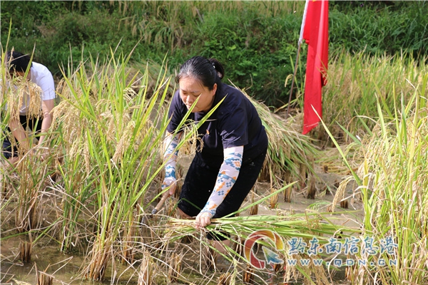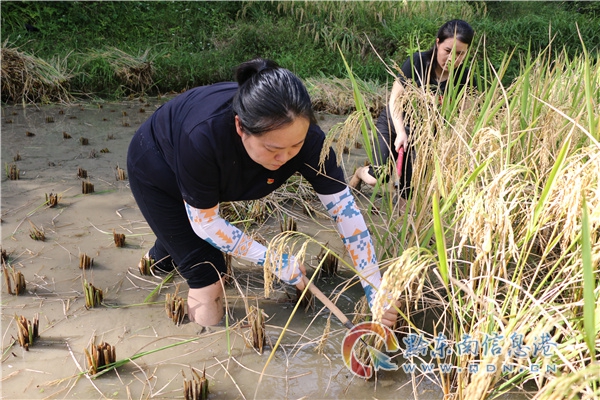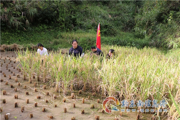 搶收稻谷過程中,全體黨員沖鋒在前,發(fā)揚不怕苦、不怕累、連續(xù)作戰(zhàn)的精神。脫下鞋子、卷起褲腳、擼起袖子紛紛走向田間地頭,分工合作,有的割稻穗,有的將稻穗脫粒,有的裝袋子,大家手拿鐮刀,肩扛稻谷,在泥濘的稻田間留下辛勤付出的身影。在炙熱的太陽照射下,鮮紅的黨旗豎在稻田間,黨員們用實際行動與時間賽跑,與收割機搶收,保證水稻測產(chǎn)任務(wù)的順利完成。