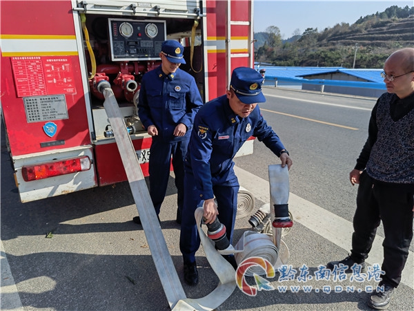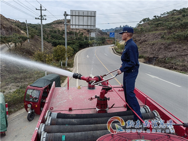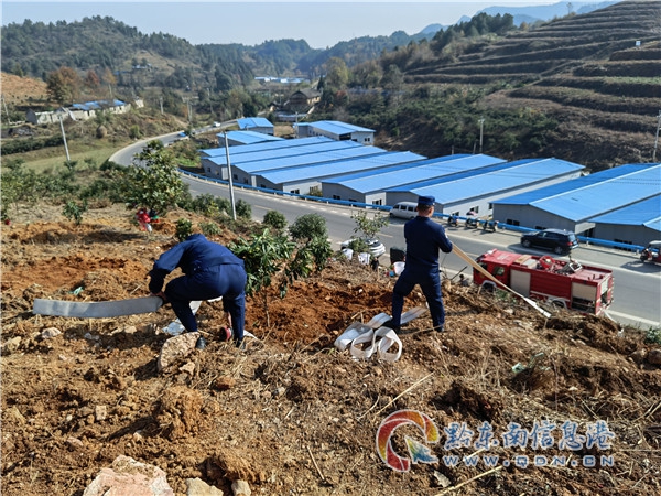 消防指戰(zhàn)員到達目的地后,由于前往種植地的道路彎曲狹窄,車輛行駛比較困難,此時的樹農(nóng)早已在狹窄的路口等待送水的指戰(zhàn)員,經(jīng)樹農(nóng)做“向?qū)?rdquo;,很快到達樹苗種植地。來不及片刻休息,指戰(zhàn)員們便快速熟練的開展送水工作,鋪設(shè)水帶、安裝接口、開閘、出水、加壓,只見一股清澈的“甘露”從水帶里噴射而出流入蓄水池中。蓄水池注滿后,指戰(zhàn)員又利用車載炮出水噴灑樹苗,防止樹苗因時間過長難以成活。