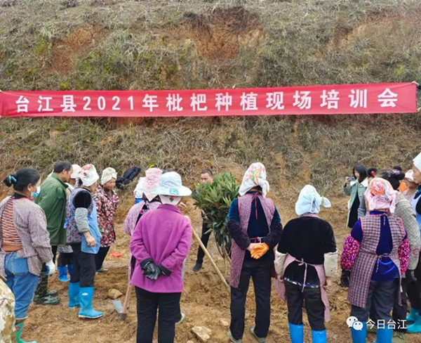 在革一屯上村和田壩村,村民們正忙著卸有機(jī)肥料、下枇杷苗;在施洞鎮(zhèn)良田村枇杷種植基地,來自附近村寨的40余名村民們手拿鋤頭,相互配合,默契的挖坑、栽種、填土、澆水,現(xiàn)場(chǎng)一派熱火朝天的氣象。