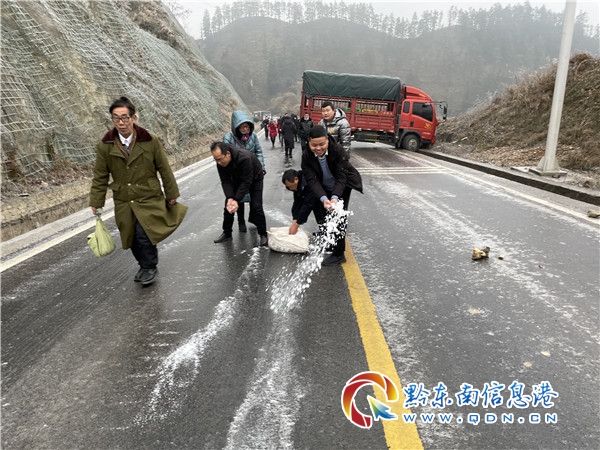 G242國道高釀至十里沖路段,道路結冰嚴重,車輛通行受阻,我局出動往高釀石洞方向巡查人員4人緊急投入到該路段撒鹽保暢工作中,投入工業鹽300余斤;X8G3注溪-邦洞公路,K0+000~K0+300路段路面凝凍,禁止車輛通行,我局出動往邦洞注溪方向巡查人員4人緊急拋灑工業鹽確保道路暢通,投入工業鹽200余斤。(李之遠)