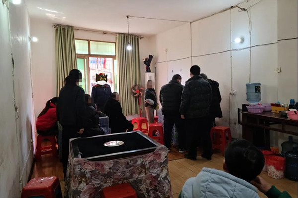 近日,天柱縣公安局接到群眾舉報在天柱縣鳳城街道人民巷一民房內有人聚眾賭博。掌握信息后,吳智興副局長指派遠口派出所、坌處派出所組成打擊組開展摸排。核實情況后,1月15日下午13時許,民警迅速進入民房,現場抓獲8名聚眾賭博違法人員。