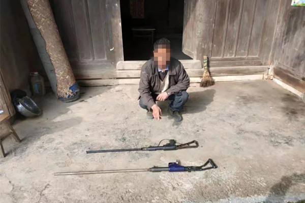 近日,天柱縣公安局邦洞派出所在開展“入村寨進(jìn)社區(qū)走企業(yè)訪群眾”大走訪工作時(shí)收集到線索,在邦洞街道章程村有5人非法持有槍支。了解情況后,邦洞派出所立即將情況向縣局匯報(bào),天柱縣公安局黨委高度重視,并由吳智興副局長(zhǎng)帶隊(duì)組織邦洞、遠(yuǎn)口、坌處、坪地等4個(gè)派出所警力,依法對(duì)邦洞街道章程村明某光、明某云、石某國(guó)、胡某華、石某炎等5人住所進(jìn)行搜查,分別在明某光家中搜出非法改裝射釘槍2支,明某云家中搜出火藥槍1支,石某國(guó)家中搜出射釘槍1支,胡某華家中搜出非法改裝射釘槍1支、火藥槍1支,石某炎家中搜出火藥槍1支。