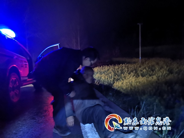 當天凌晨3點06分,渡馬派出所接到群眾報警稱:“敗陣坡公路邊有一位老人躺在地上,不知道怎么回事,請你們出警來看一下”。接到報警后,值班民警聞令而動,火速趕往現場。
