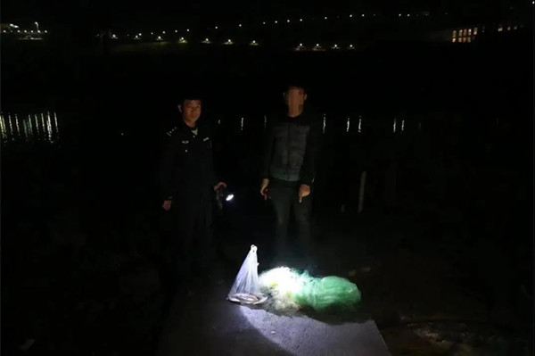 3月12日23時許,天柱縣公安局江東派出所在轄區巡邏時發現,清水江流域天柱縣江東鎮段,有兩艘小船在非法捕撈,被巡邏警當場查獲,現場在嫌疑人楊某船上查獲漁網4副,非法捕獲的大小魚類94尾。在嫌疑人舒某某船上查獲漁網2副,非法捕獲的大小魚類23尾。