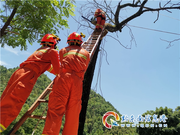 經過消防指戰員的商榷,決定先采用6米二節拉梯上樹,由上到下,逐級鋸割的方法,為了防止鋸割時樹干斷裂壓倒居民房屋,消防員首先利用繩索對自身安全進行保護,然后準備對切割的支干進行固定,然后利用機動鏈鋸對枝干進行分段式切割處理,最后再利用機動鏈鋸把整棵樹的主干進行切割,經過4個多小時的努力,大樹被全部鋸斷,成功排除了隱患,沒有造成其它的損失。最終把威脅人民群眾安全的“攔路虎”給把拔掉了。(董明柱)