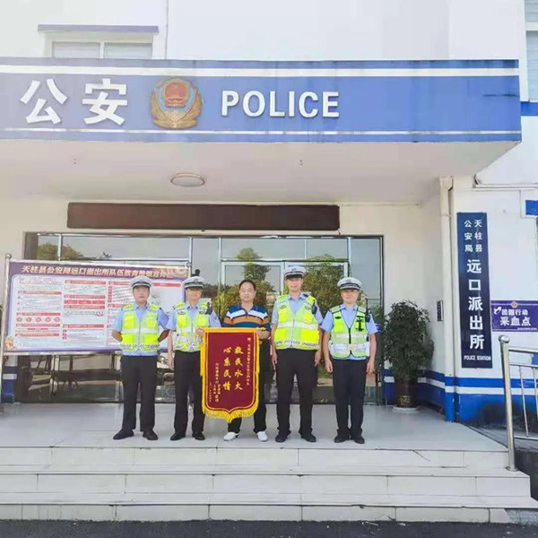 事后,夫妻二人為表示對天柱公安交警四中隊的感謝,在傷勢痊愈后特地送來了一面錦旗。