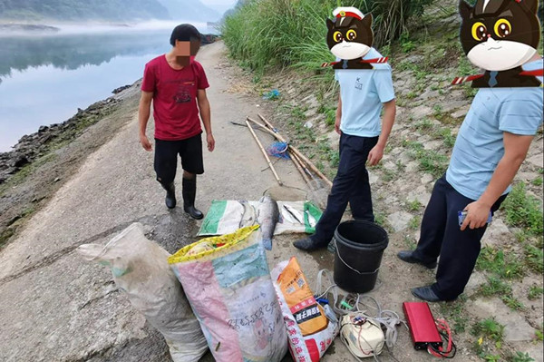 6月17日上午6時許,天柱縣公安局白市派出所民警在清水江沿岸開展日常巡查工作,在白市鎮老碼頭(地名),發現河內有人正在非法捕撈,被巡查民警當場抓獲,現場查獲野生魚類11.05公斤、漁網兩副、電魚工具一套。