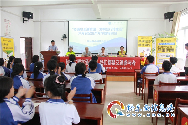 本網訊 6月29日下午,天柱縣交警察大隊聯合松果共享電單車企業來到天柱縣職業中學開展“交通安全進校園 文明出行伴成長”專題培訓會,進一步深化校園全知識宣傳教育,扎實推動安全宣傳進校園工作。