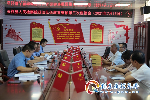 本網訊 根據政法隊伍教育整頓要求,堅持開門搞教育整頓,做到讓人民群眾參與、受人民群眾監督、由人民群眾評判。2021年7月15日上午,天柱縣人民檢察院在西樓四樓會議室召開政法隊伍教育整頓第三次座談會,人大代表、政協委員、企業家代表、律師代表、人民監督員和本院班子成員參加座談會。