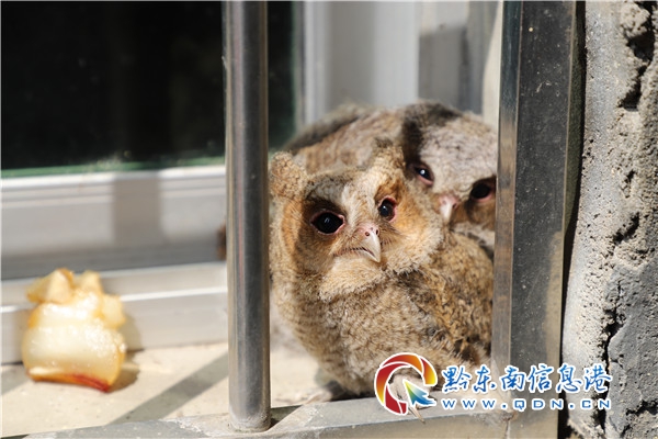 7月24日下午,森林公安局民警接到天柱縣社學街道一名吳姓群眾電話報警稱:在其房屋窗戶上發現兩只幼鳥,懷疑是國家重點保護動物貓頭鷹,不敢擅自處理,請森林公安前往處置。下午15時民警到達現場,在吳先生家里一樓窗戶角落邊看到有兩只毛茸茸的幼鳥。幼鳥外觀與國家重點保護動物貓頭鷹相似,經民警拍照與專業人員確認,兩只幼鳥均為國家二級保護動物領角鸮。因領角鸮幼崽還不具備自主飛行能力,民警帶上專用手套,隨后將幼鳥帶回。并對幼鳥身體狀況進行了檢查,未發現明顯外傷,可以正常進食。為了給領角鸮幼崽一個安穩的家,民警經多方聯系。7月26日,天柱縣森林公安局民警驅車近兩百公里將疑似貓頭鷹幼崽移送至貴州雷公山自然保護區管理局動物救助站,由救助站對其進行專業救助。( 吳就潤)