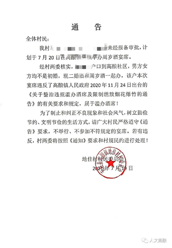 近年來高釀鎮一直致力于把治理濫辦酒席作為減輕農民負擔,關注民生的重點工作來抓,以基層黨建引領為抓手,動員發動廣大群眾積極自覺參與文明鄉風、宜居鄉村的創建工作,并要求鎮、村干部和黨員帶頭示范,做給群眾看、帶著群眾干。同時,發揮好村規民約的作用,樹立村民的主人翁意識,倡導移風易俗,助推鄉村振興,營造了和諧、穩定、文明、節儉的社會新風尚。