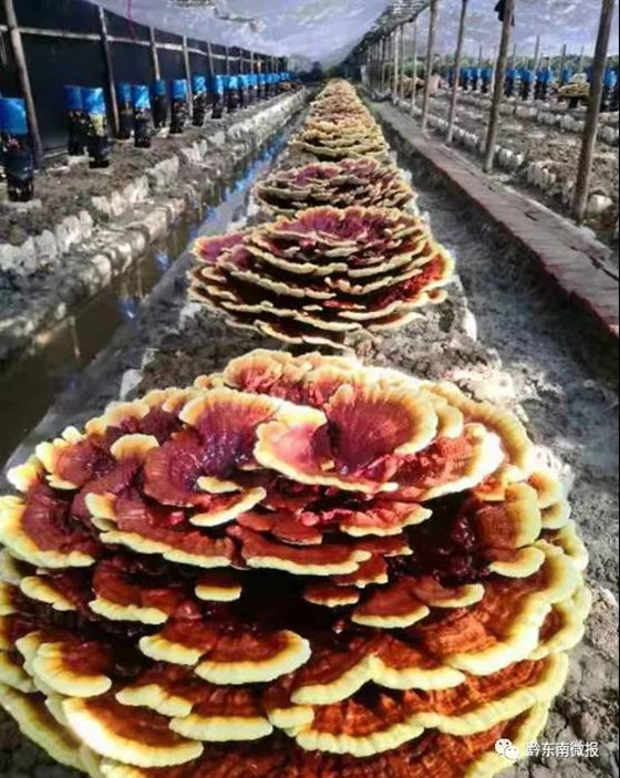 這里種出的靈芝大如圓桌,直徑一米以上,每朵售價可達2000多元,是鎮里的主打產業之一。