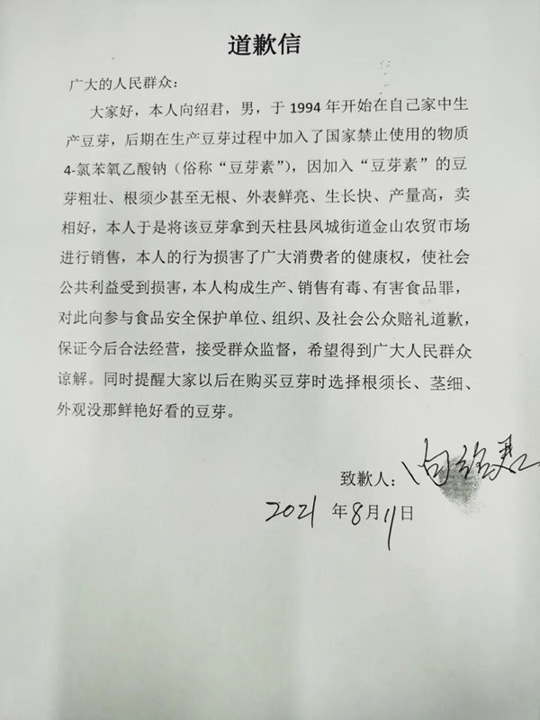 食品加入禁用物質(zhì)!天柱一男子公開道歉!