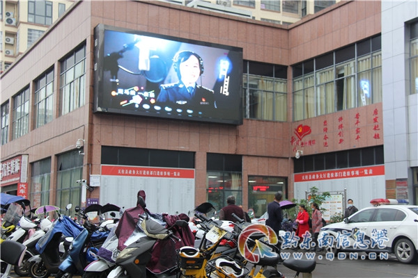 天柱交警利用縣政務中心門前大屏幕播放交通安全宣傳片