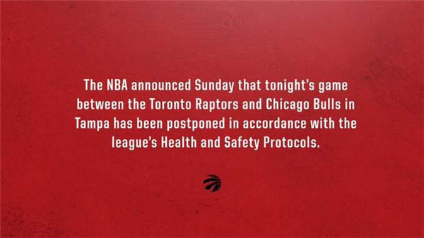 據(jù)報(bào)道,多倫多猛龍隊(duì)由于暴發(fā)新冠疫情,包括有人檢測結(jié)果呈陽性,以及為此隔離的人數(shù)太多,以至于猛龍隊(duì)無法派出比賽要求的至少 8 名隊(duì)員的最低要求。原定在 2 月 28 日晚上舉行的多倫多猛龍隊(duì)對(duì)陣芝加哥公牛隊(duì)的賽事由于新冠疫情和相關(guān)的防疫規(guī)定而推遲。