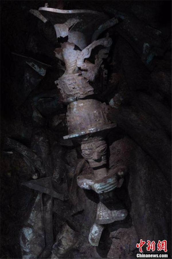 5 月 28 日,四川廣漢," 走進三星堆讀懂中華文明 " 主題活動之 " 三星堆奇妙夜 " 活動上發布了三星堆遺址最新考古成果:3 號祭祀坑內的青銅頂尊人像驚艷亮相。