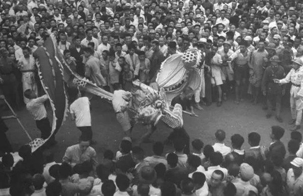 (抗戰(zhàn)勝利,民眾在街頭歡慶)