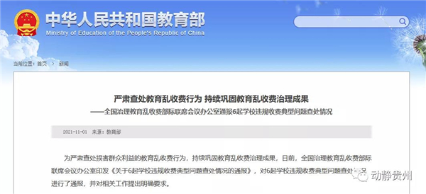 《通報(bào)》指出,四川、河北、江西、吉林、遼寧和貴州六省教育行政部門(mén)對(duì)有關(guān)學(xué)校違規(guī)收費(fèi)問(wèn)題進(jìn)行了核實(shí)處理。