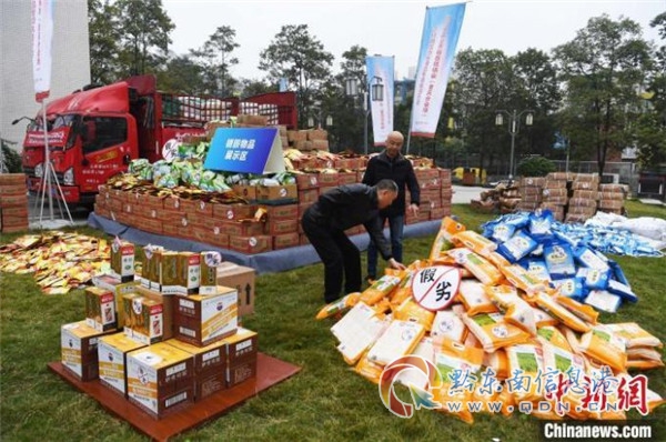 ▲資料圖:重慶集中統(tǒng)一銷毀農(nóng)村假冒偽劣食品。 陳超 攝