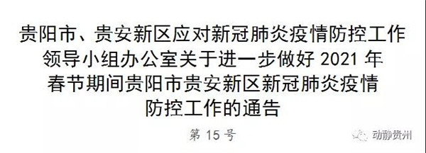 近日,貴陽市、貴安新區應對新冠肺炎疫情防控領導小組辦公室發布了關于做好2021年春節期間新冠肺炎疫情防控工作的通告,具體內容如下: