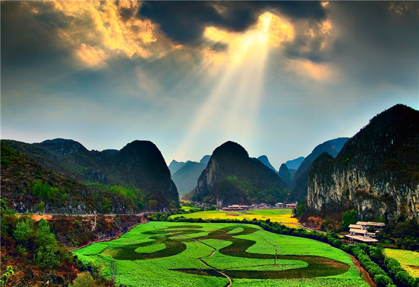 圖片安順龍宮風景區油菜花田。楊鶴 攝