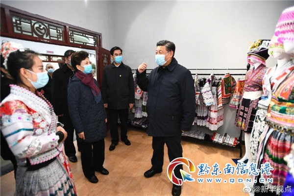 3 日下午,正在貴州考察調研的習近平總書記來到畢節市黔西縣新仁苗族鄉化屋村。扶貧車間里,一件件精美的手工苗繡服裝、特色小飾品等吸引了總書記的目光。習近平向村民詳細詢問制作工藝流程。他對大家說,傳統的也是時尚的,你們一針一線繡出來,何其精彩!一定要發揚光大苗繡,既能繼承弘揚民族文化、傳統文化,也能為扶貧產業、鄉村振興作出貢獻。