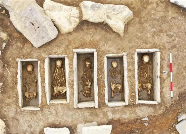 此外,在該墓葬群還發(fā)現(xiàn)有遷葬墓。其墓葬規(guī)格較小,有單室、雙室、三室,多使用6塊石板鑲嵌。部分人骨保存較好,人骨人為擺放,且無其他鈍傷,推測為遷葬墓,在其他地區(qū)較少發(fā)現(xiàn)。