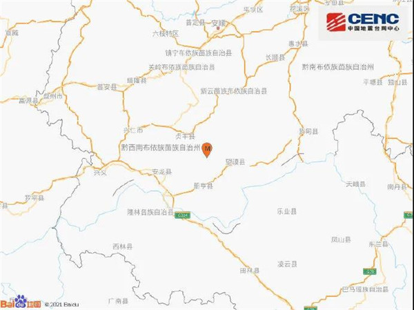 據(jù)地震臺(tái)網(wǎng):2021-06-11 14:08:00貴州黔西南州望謨縣附近(自動(dòng))(105.87,25.3)發(fā)生3.2級(jí)地震,初估震中烈度約3度。