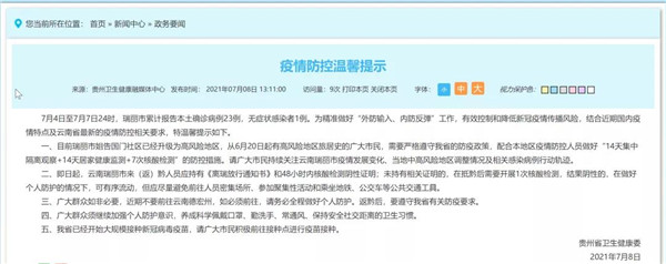 7月8日,貴州省衛生健康委發布最新疫情防控溫馨提示。內容如下: