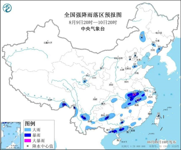 中央氣象臺 8 月 10 日 06 時繼續(xù)發(fā)布暴雨藍色預警: