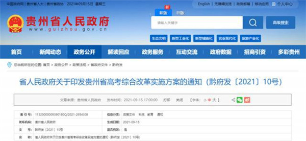 貴州省高考綜合改革實施方案的通知