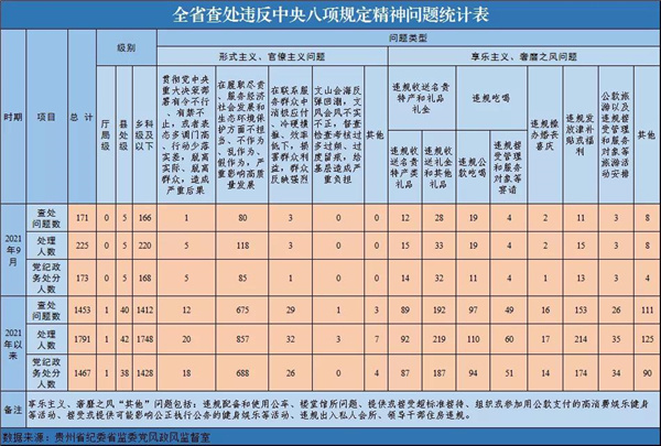 2021年以來,貴州查處違反中央八項規定精神問題1453起