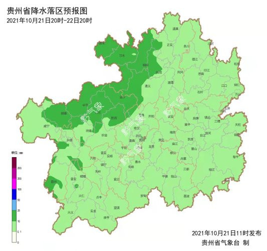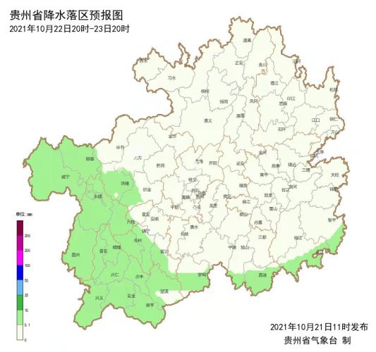 10月21日夜間到22日白天,全省陰天有小到中雨,地勢(shì)高處有雨霧;