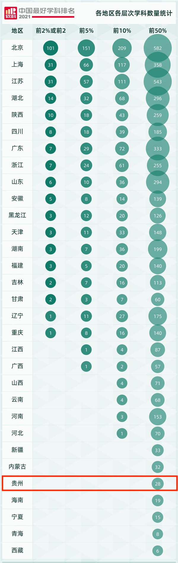 近日,高等教育評價專業機構軟科發布 "2021 軟科中國最好學科排名 "。有 486 所高校的 4992 個學科點上榜。其中,貴州 7 所院校的 28 個學科上榜,2 個學科排名進入全國前 20%。