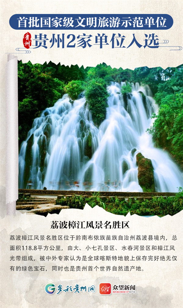 近日,全國旅游標(biāo)準(zhǔn)化技術(shù)委員會(huì)對(duì)第一批國家級(jí)文明旅游示范單位評(píng)定結(jié)果進(jìn)行公示。貴州荔波樟江風(fēng)景名勝區(qū)、貴陽世紀(jì)金源大飯店榜上有名。