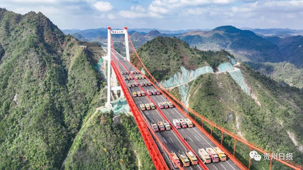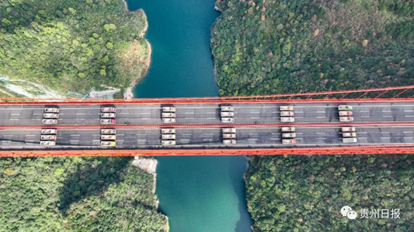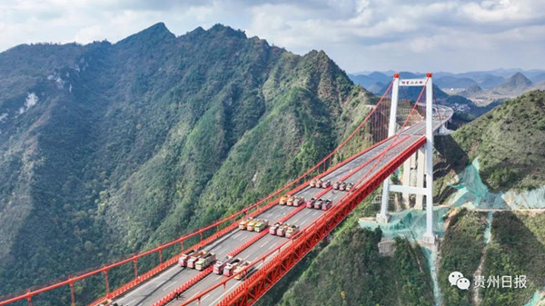 本次荷載試驗使用了48輛滿載共計1680噸貨物的大型貨車,沿大橋左右側車道依次停放在橋上,檢驗橋梁結構整體的施工質量與受力性能,對橋梁結構的正常使用性能、強度、剛度、裂縫等各項指標做出全面的評價,并對橋梁結構的實際承載能力做出科學的評估,為橋梁交(竣)工驗收、通車安全提供重要的科學依據。(撰文攝影:貴州日報天眼新聞記者 鄧剛)