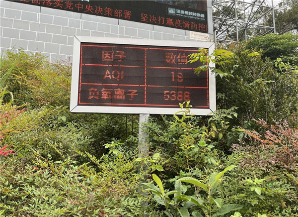 近日,黃果樹景區(qū)大門外的數(shù)字顯示屏上,正實(shí)時(shí)更新著區(qū)域內(nèi)的空氣質(zhì)量情況:每立方厘米負(fù)氧離子5388個(gè),AQI空氣質(zhì)量指數(shù)為18。這些空氣因子指數(shù)表明,黃果樹景區(qū)每立方厘米負(fù)氧離子平均濃度是空氣非常清新最高標(biāo)的兩倍多,可謂"超級(jí)清新"。