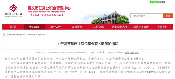 新政策從2021年12月1日起執行。可通過遵義市住房公積金管理中心門戶網站、遵義住房公積金微信公眾號、12329服務熱線等便民服務渠道了解遵義市住房公積金相關政策。