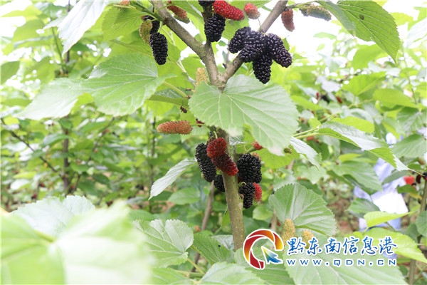 本網訊 五月的清風吹拂著客人的發絲,空氣中飄著果香味。在鎮遠縣羊坪鎮朱砂村子母坡桑葚種植基地里,只見樹上掛滿了烏黑的桑葚果實,惹人垂涎。