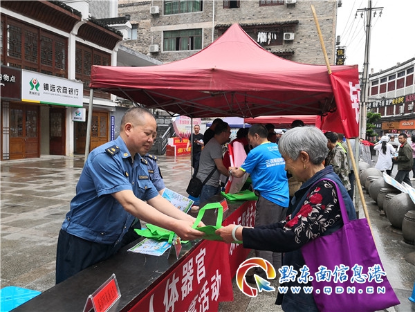 當日上午9時許,縣交通運輸局執法大隊工作人員著裝整齊,在鎮遠劇場發放交通安全知識卡片、宣傳手提布袋等資料,向現場群眾針對交通行業事故風險點認真講解交通安全有關知識。本次活動共發放宣傳資料120份。