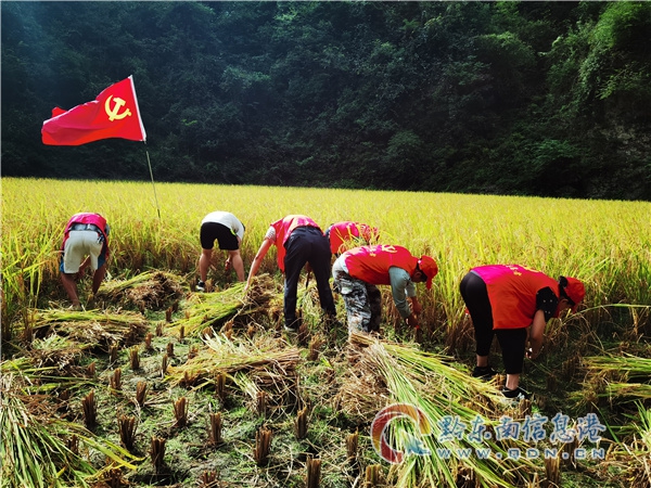 時下正值秋糧成熟收割的季節,9月24日,縣人大機關黨員干部與駐村工作隊共20余人來到甘溪村大寨組幫助弱勞動力戶唐文吉老人搶收水稻。大家來到稻田邊,在鮮紅黨旗的映照下,頂著烈日,撲下身子,干勁十足,有的擼起袖子、挽起褲腳、手持鐮刀割水稻;有的負責打稻谷、扎禾桿、裝袋、扛袋,大家分工協作,一派熱火朝天的勞動場景拉近了干部與群眾的距離,不一會兒就將唐文吉老人家的2畝多水稻收割完成,并裝袋運回了家。