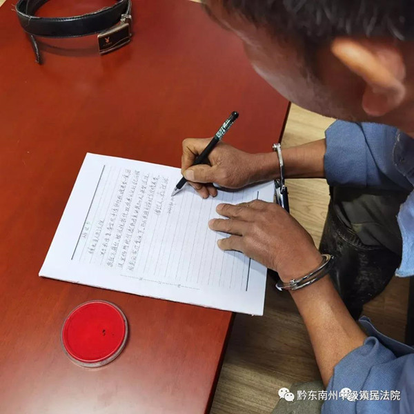 重陽節又名敬老節,值此佳節之際,楊某海卻不遵守中華民族尊老敬老愛老的傳統美德,拒不履行贍養父母的義務。鎮遠法院執行局緊急出動,依法強制拘傳被執行人楊某海,經過執行法官的教育,楊某海在法院寫下悔過書。