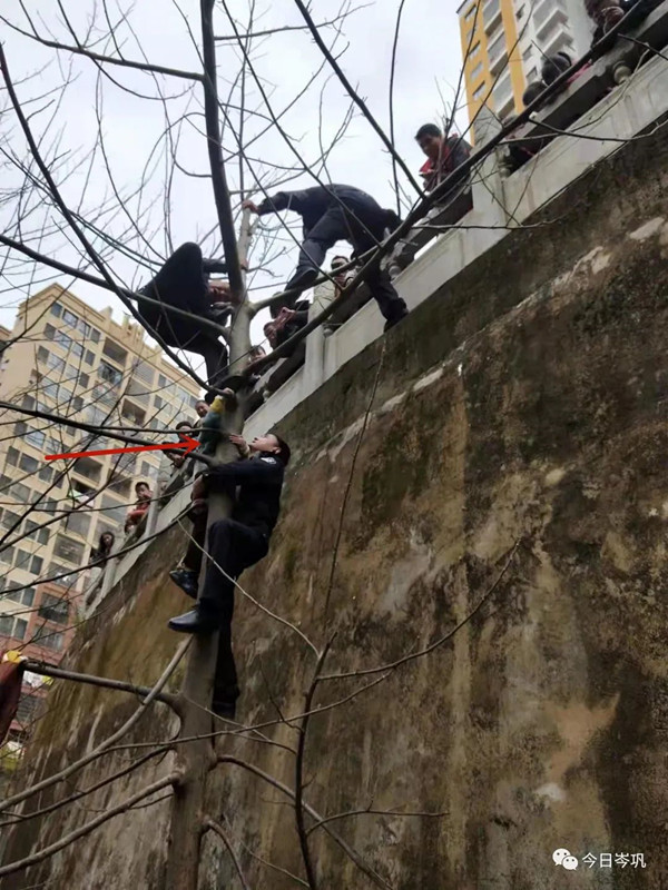 小孩身上的棉衣早已吸飽了水,加上河水較深,黃明昌看到小孩已經凍得打哆嗦,及時拉到岸邊。“那個時間路上基本沒什么人,腦子里就想著趕緊救人,一邊跑上村民樓找繩子,一邊撥打110報警,幾分鐘后,大有鎮派出所的3位民警就趕到現場,然后我們爬到樹干上,接力把小孩救上了岸。” 黃明昌回憶道。