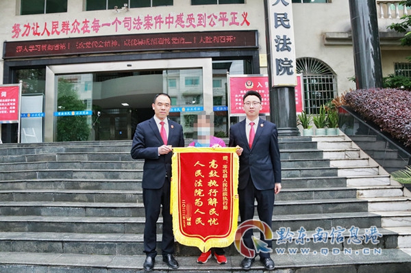 2012年6月的某天,李某等4人以龍某有血光之災,需要拿出錢財做法事才能“渡劫”的詐騙手段,騙取龍某10余萬元,后李某等4人均被判刑入獄,但龍某仍有2萬余元未被追回。在李某出獄后不久,岑鞏法院通過線上凍結、扣劃被執行人財產,線下傳喚、拘傳被執行人等強制執行手段,執行到了部分款項。至此,龍某被騙錢財已基本被追回,特來到岑鞏法院向執行法官送來錦旗表示感謝。