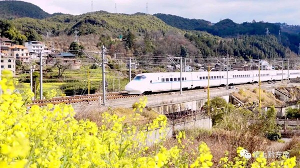一列列動車組列車在從江高鐵站疾馳而過,穿過一片油菜花海,汽笛悠揚響徹山巒,載送外出務工群眾平安出行,在清晨陽光中開啟著一輪新的征程。(從江縣融媒體中心記者:吳德軍 石強華)