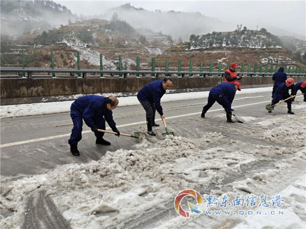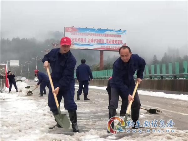 現(xiàn)場(chǎng)經(jīng)從江縣應(yīng)急管理局救援志愿服務(wù)隊(duì)15人快速有序的鏟冰除雪作業(yè)后,從江縣城至從江高鐵站方向的弄登大橋路段于2月22日15時(shí)36分恢復(fù)正常通車,保障了人民群眾的安全出行和按時(shí)到站,打造一支應(yīng)急鐵軍。(龍運(yùn)翔)